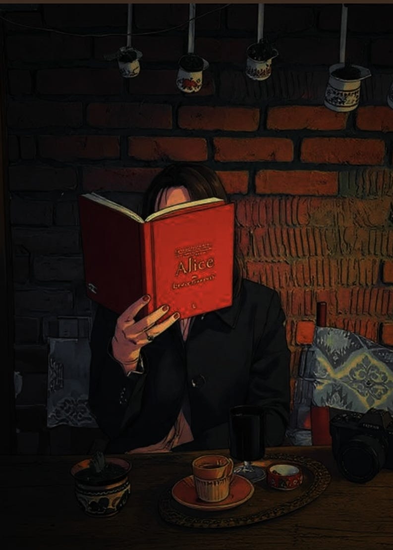 On a quiet afternoon in a café, someone sits alone with a book.